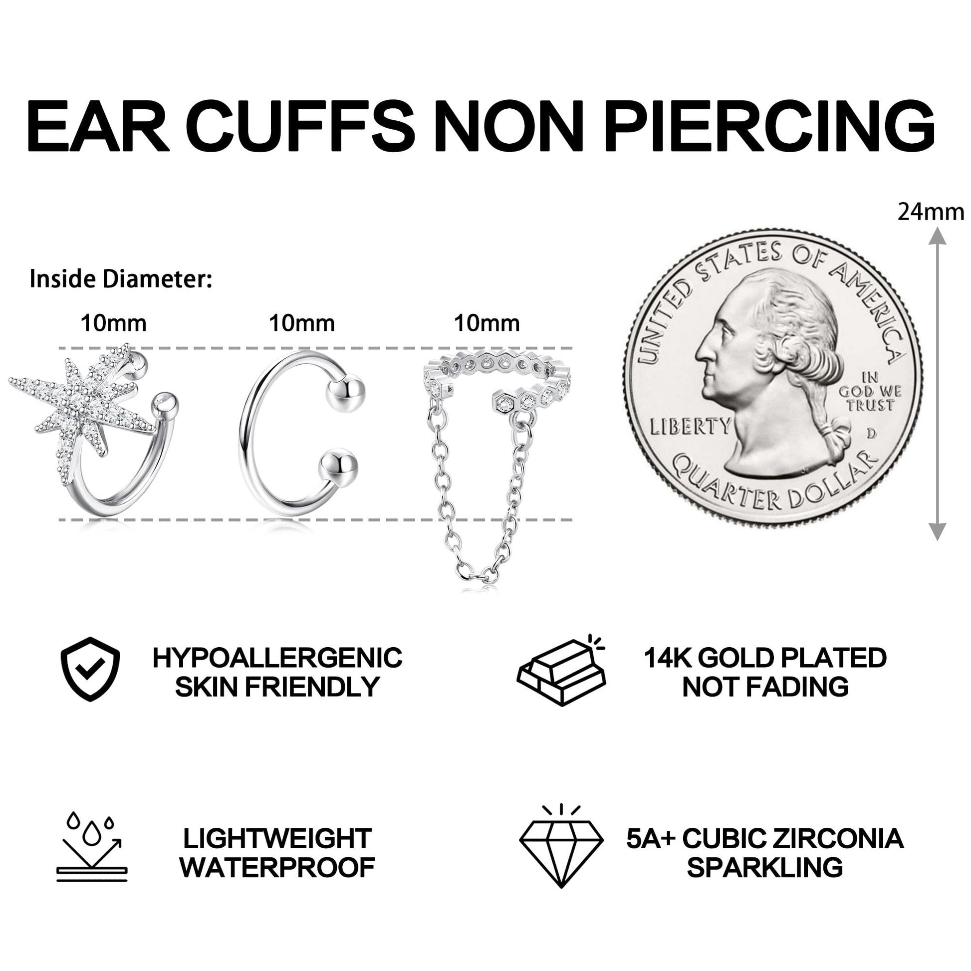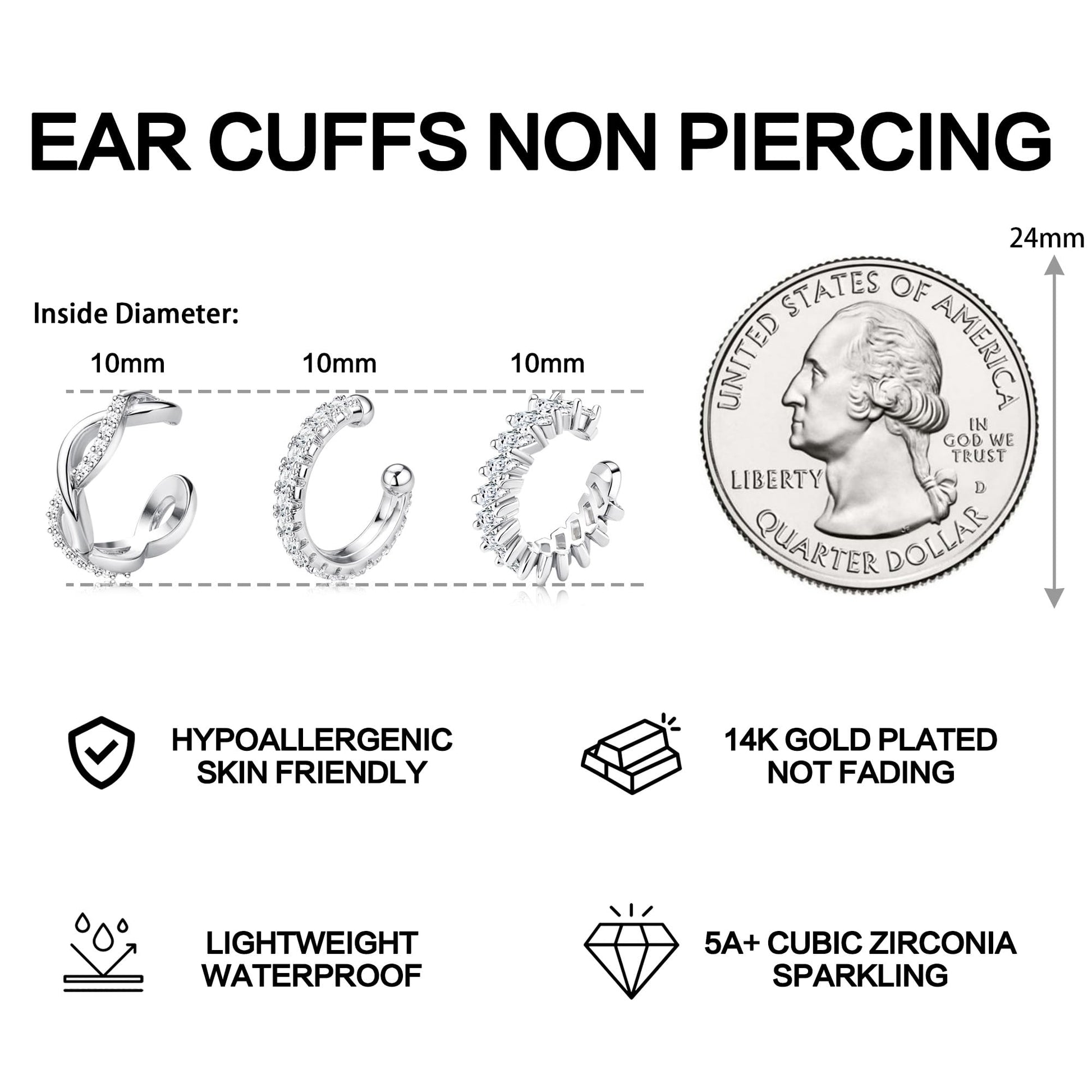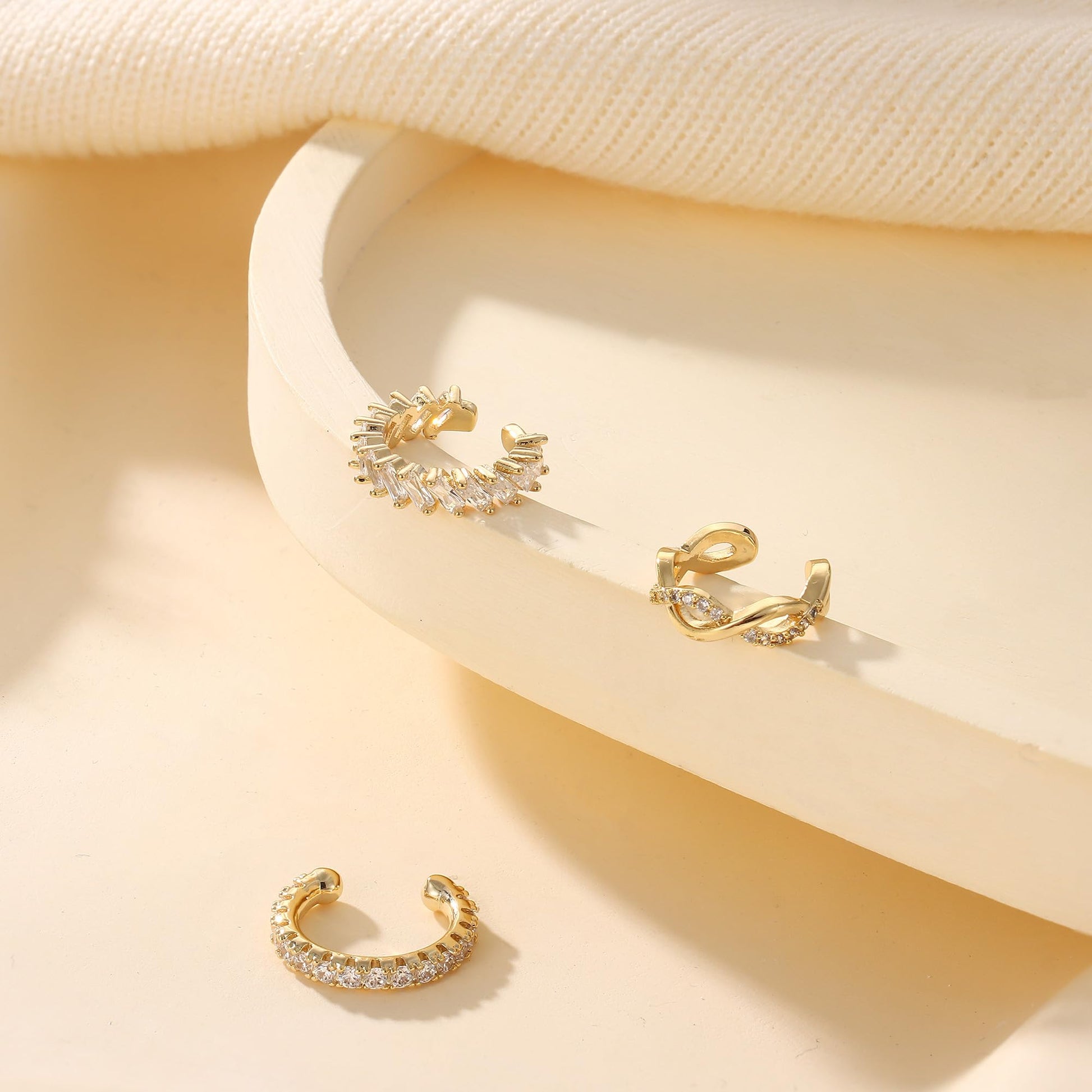 - DIFFERENT STYLES 💖There are 3 pairs different types of ear cuffs that you can choose to wear individually or stack together. The clip on earrings set with AAAAA+cubic zirconia, sparkling on the ears.