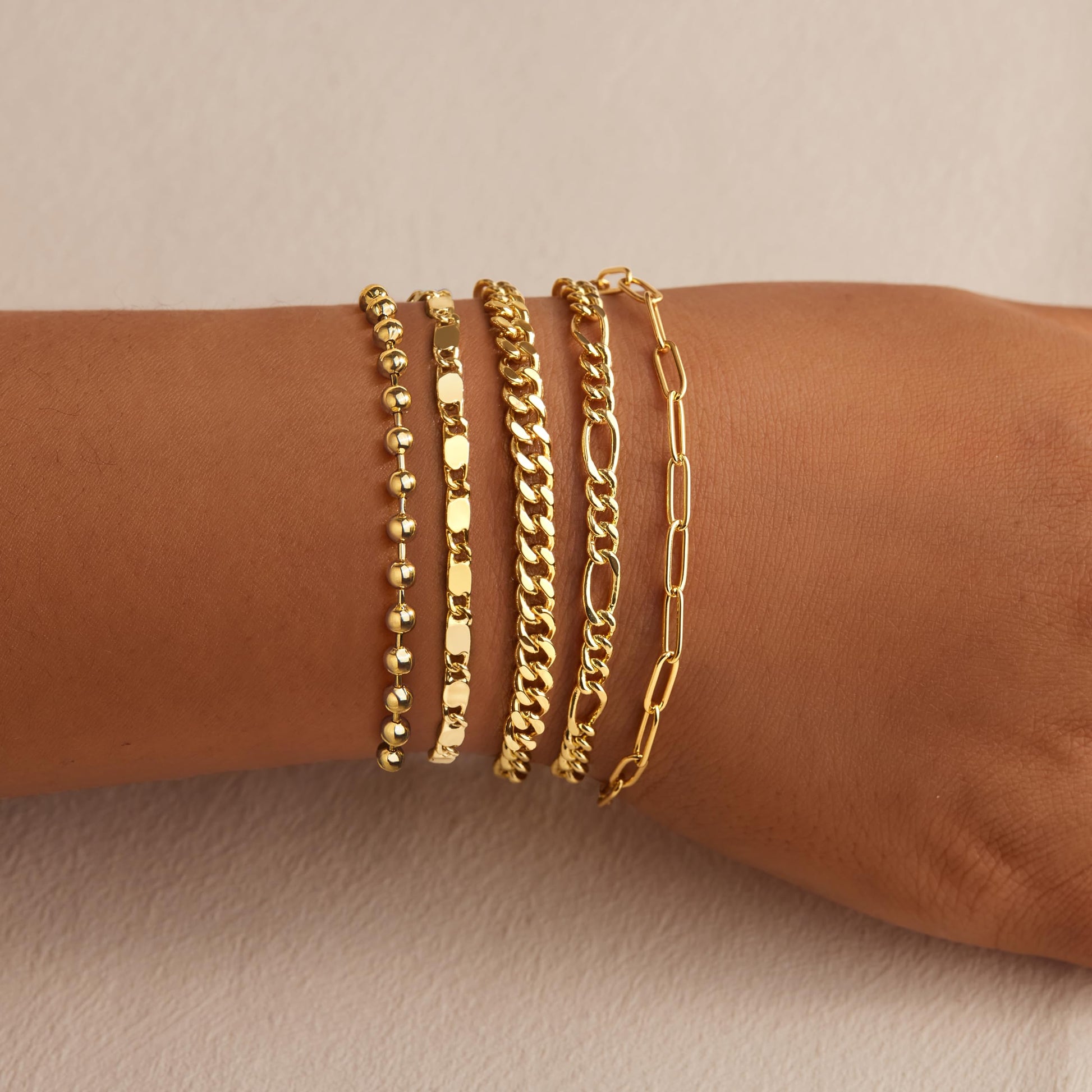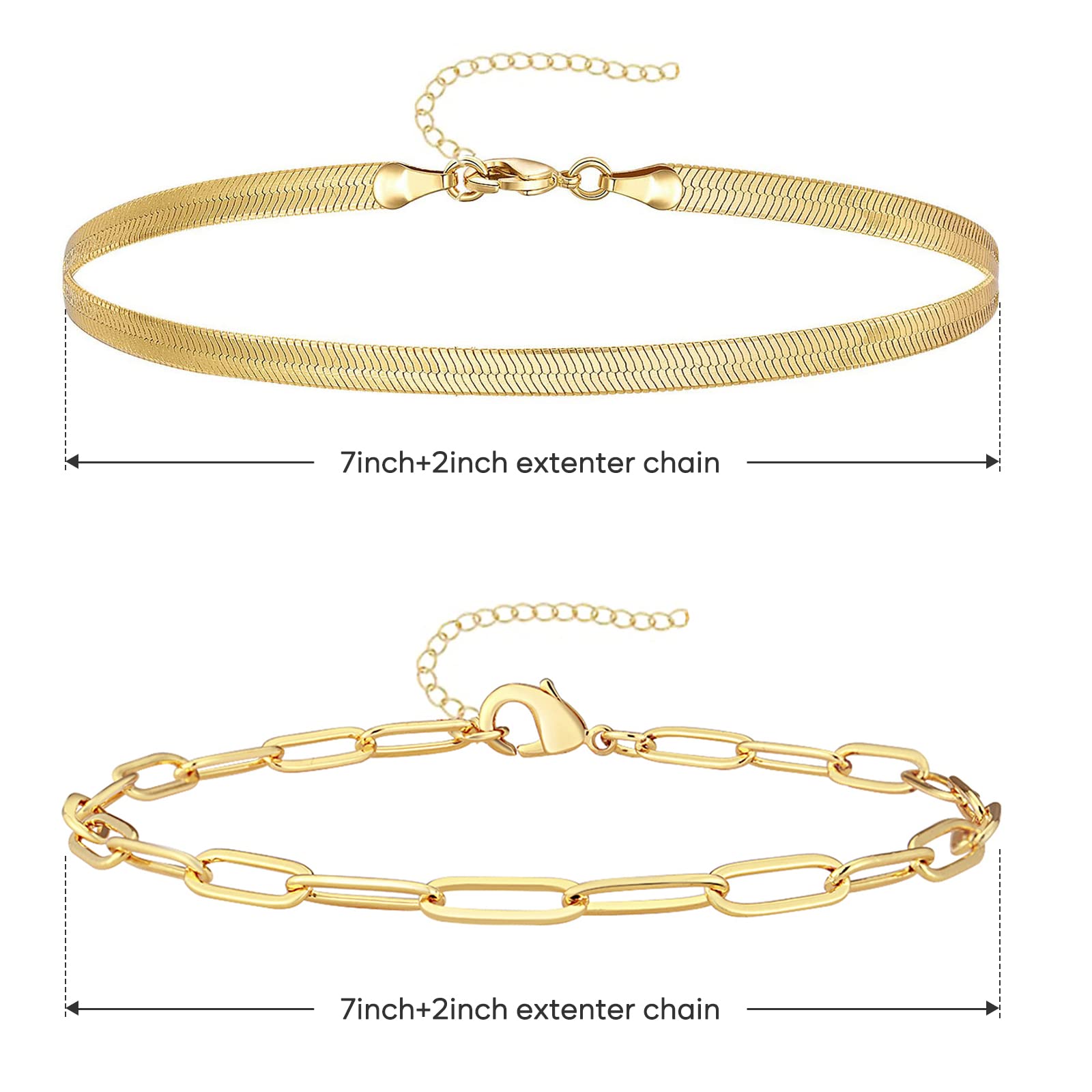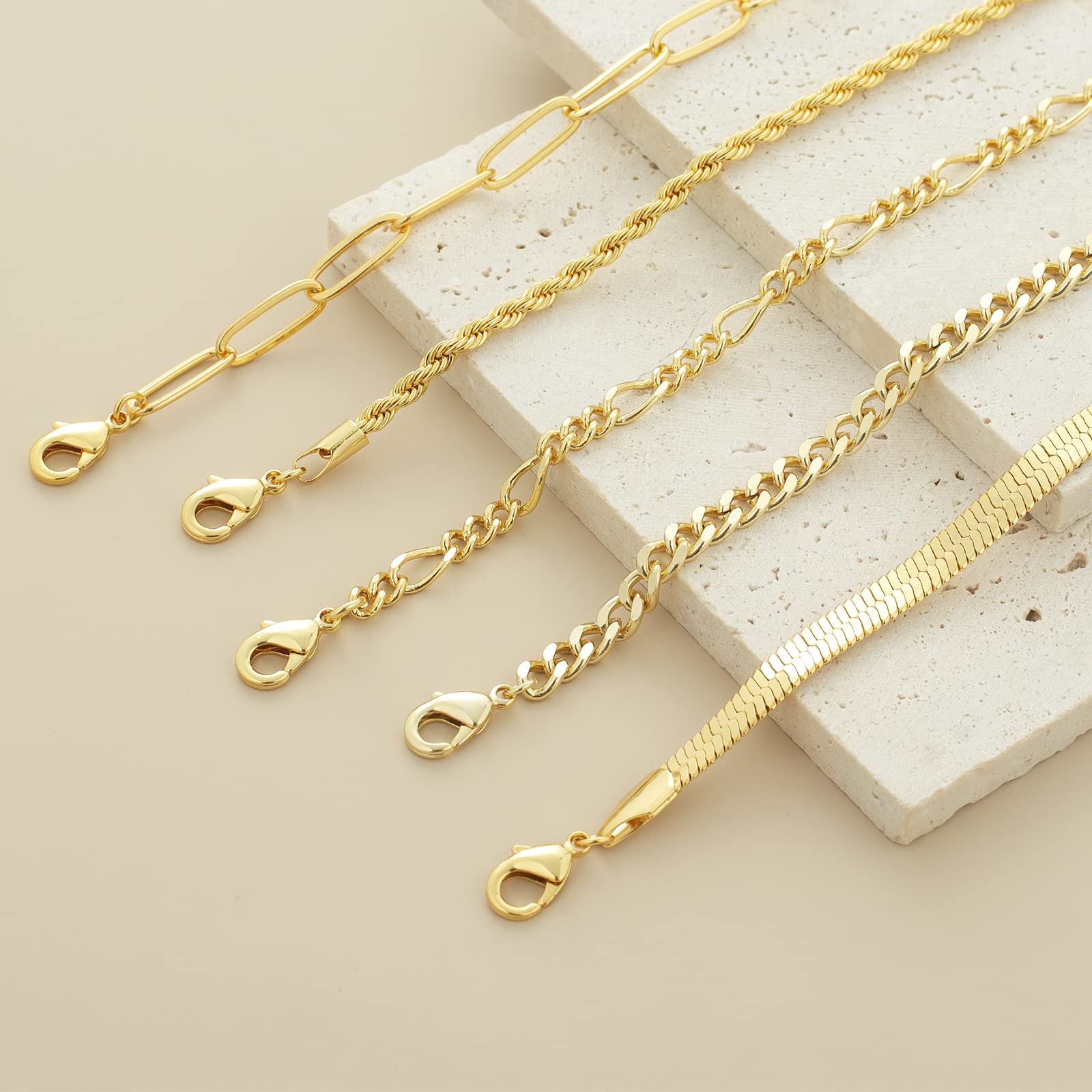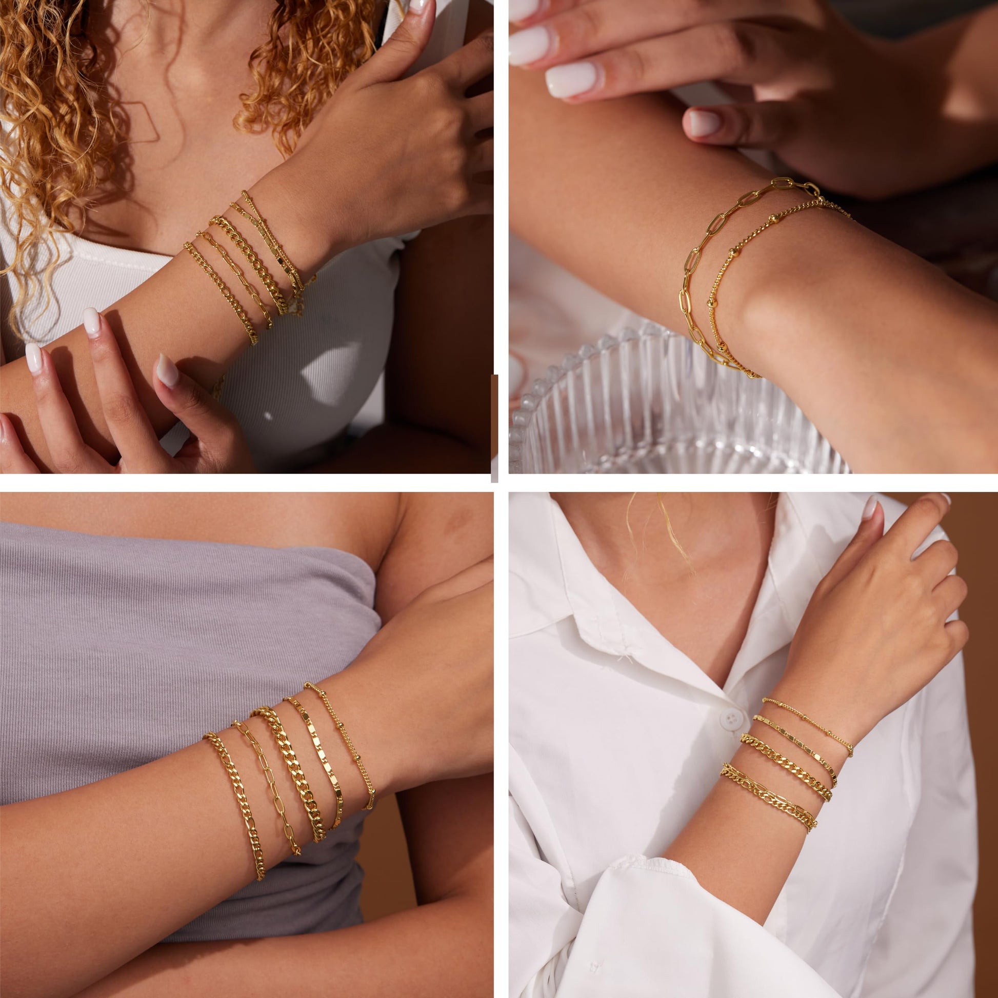Gold Bracelets for Women Trendy,14K Real Gold Plated Dainty Stackable Paperclip Cuban Link Chain Bracelets,Cuff Bracelets Jewelry Set Adjustable 7"+2"
