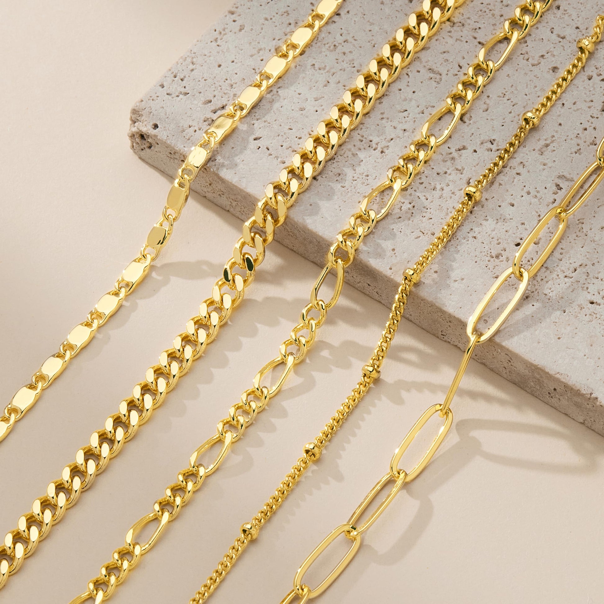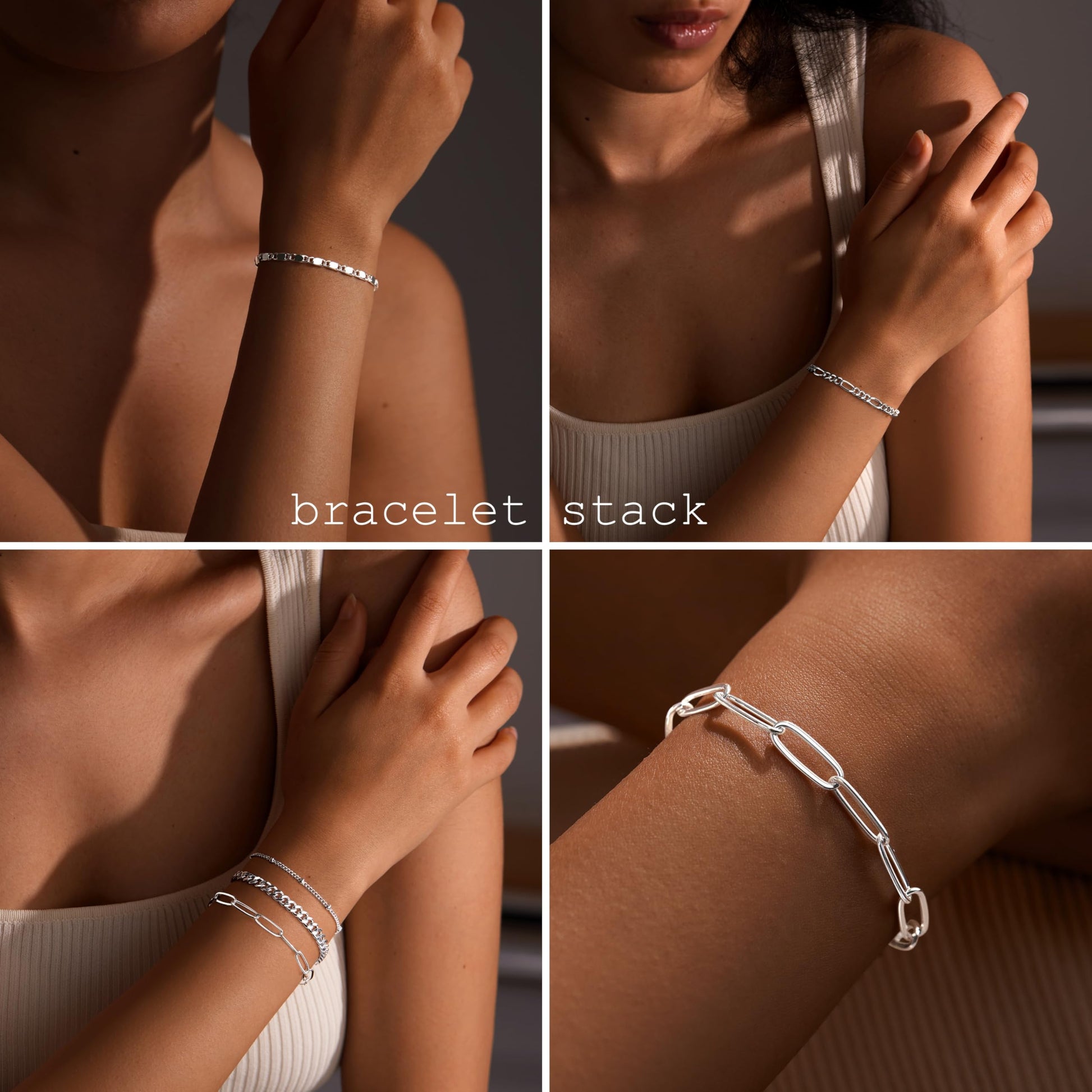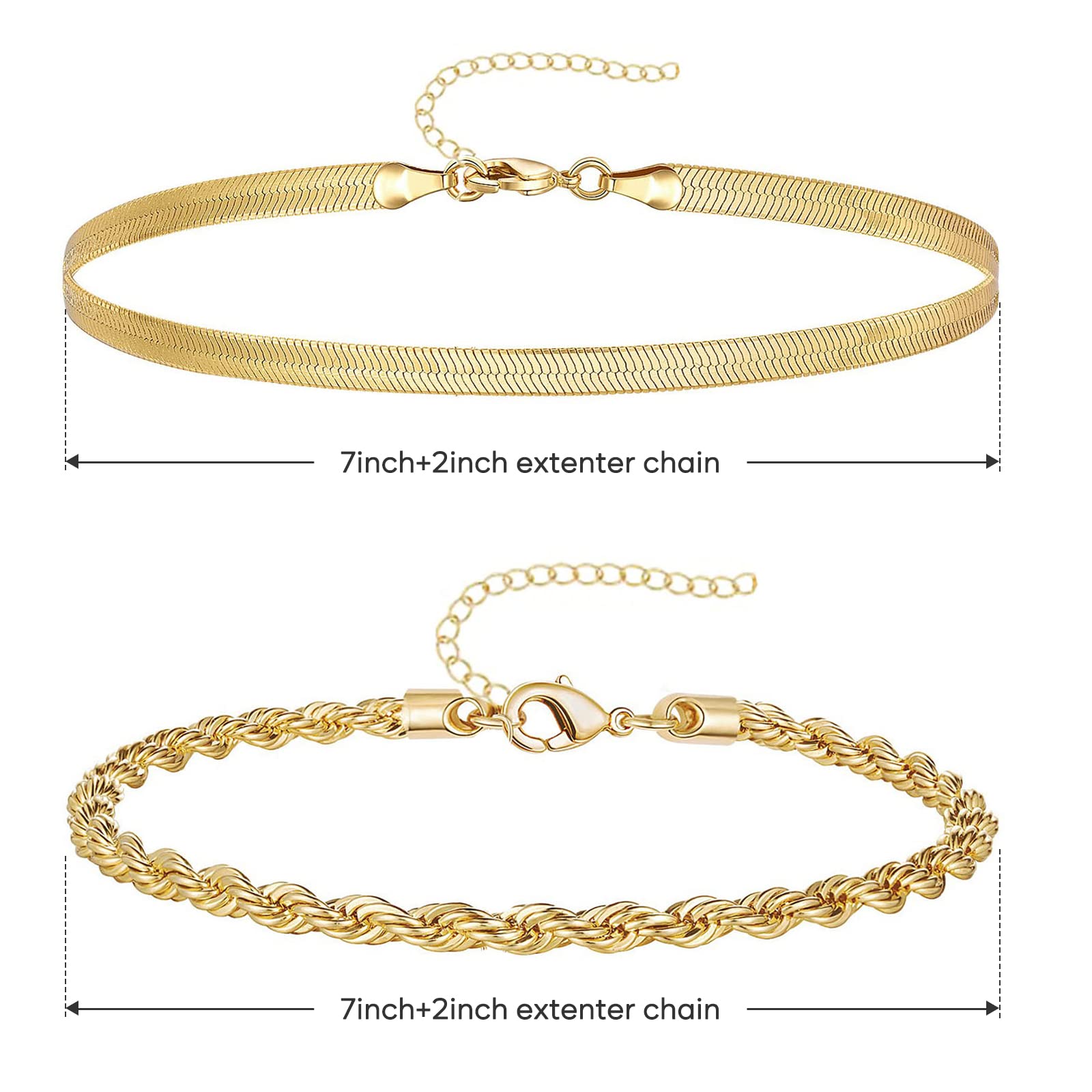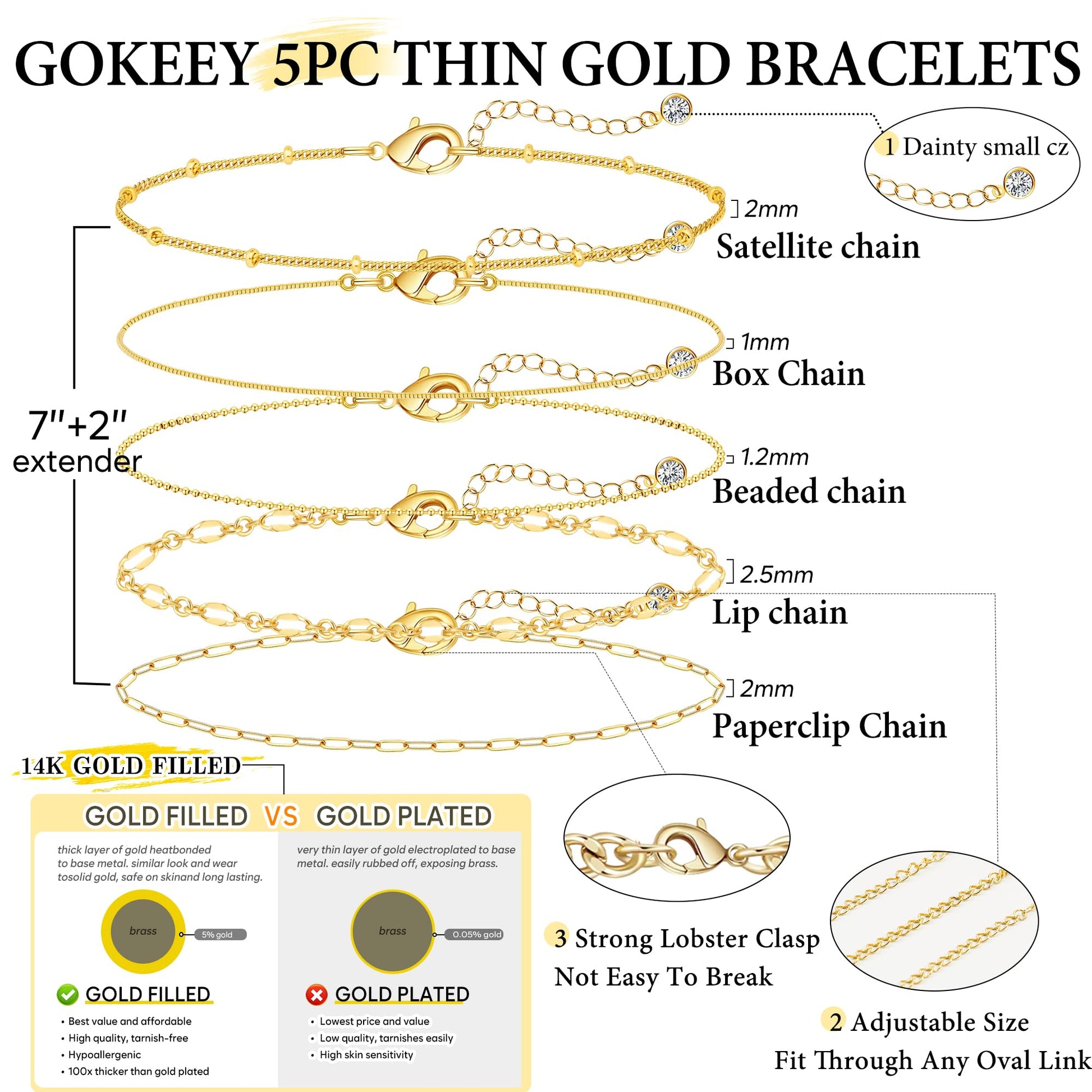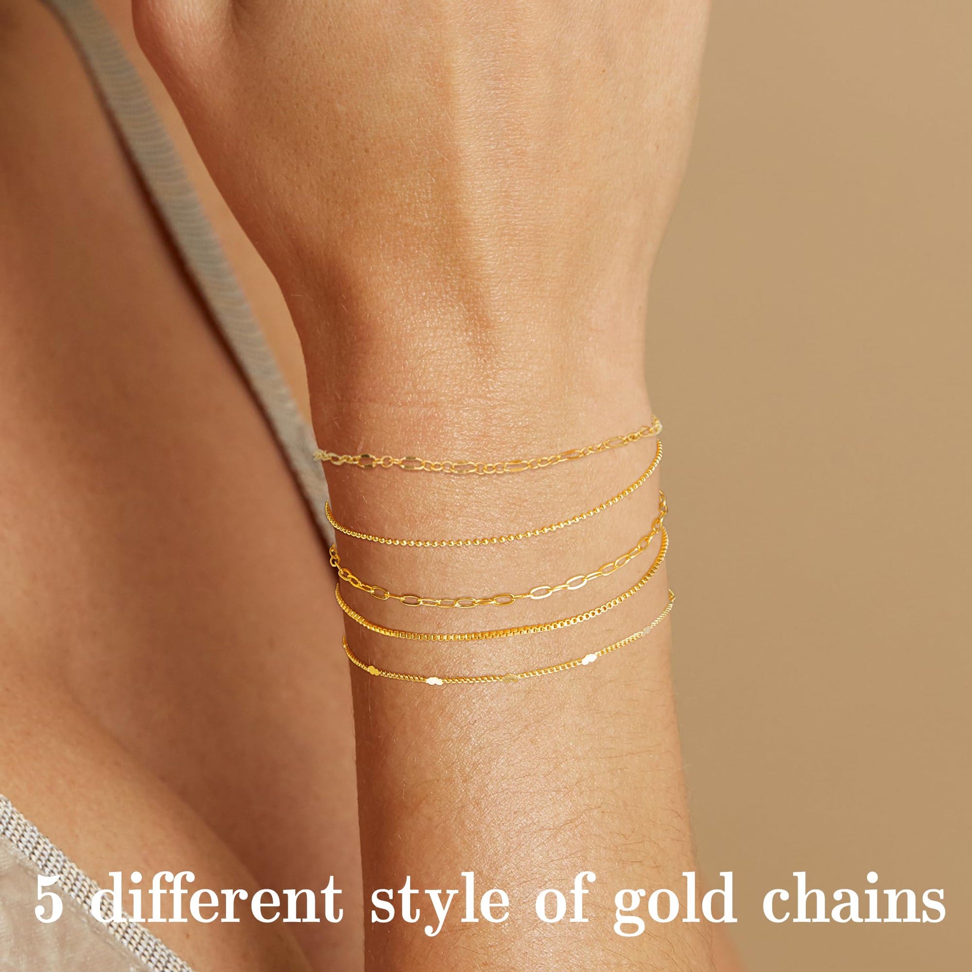 Gold Bracelets for Women Trendy,14K Real Gold Plated Dainty Stackable Paperclip Cuban Link Chain Bracelets,Cuff Bracelets Jewelry Set Adjustable 7"+2"