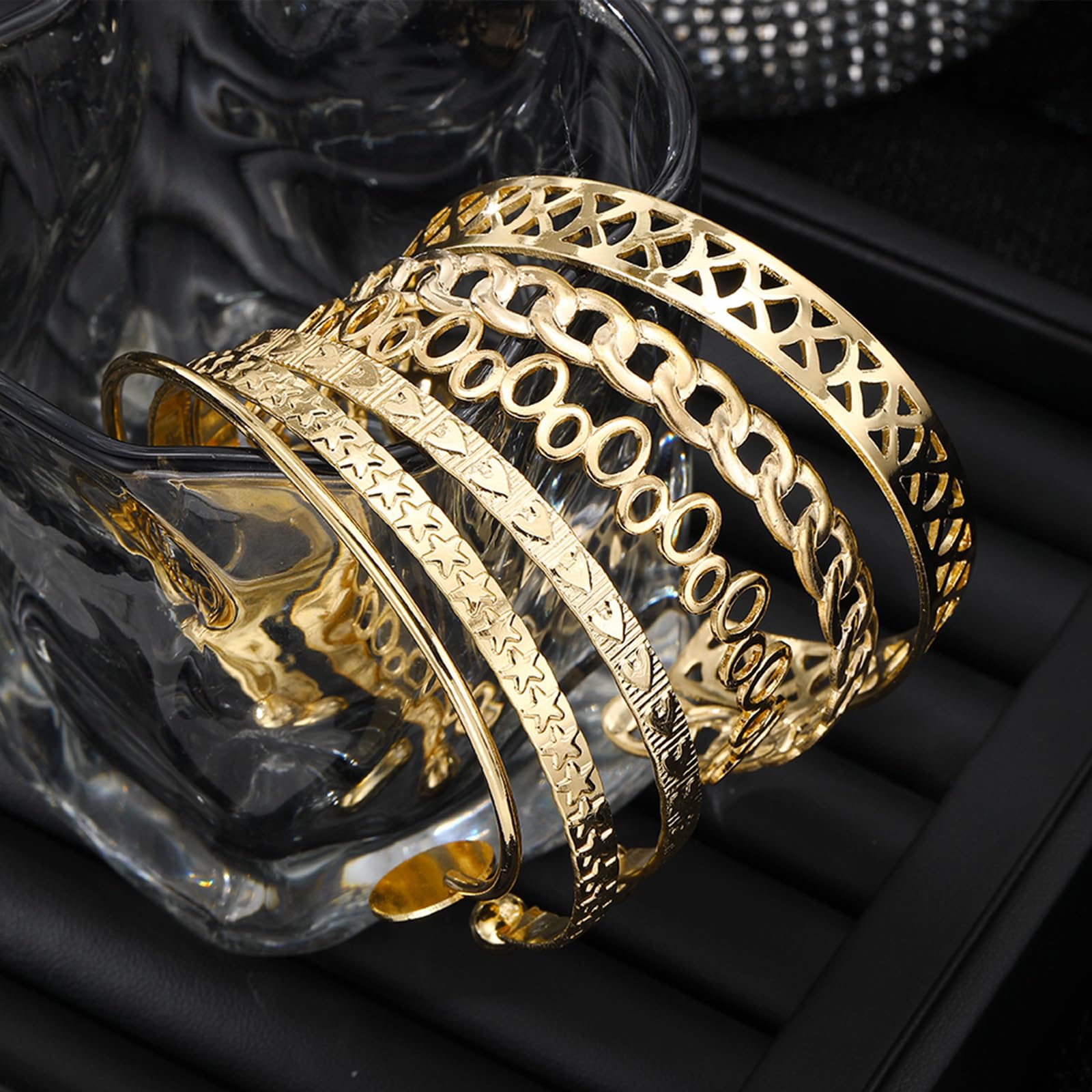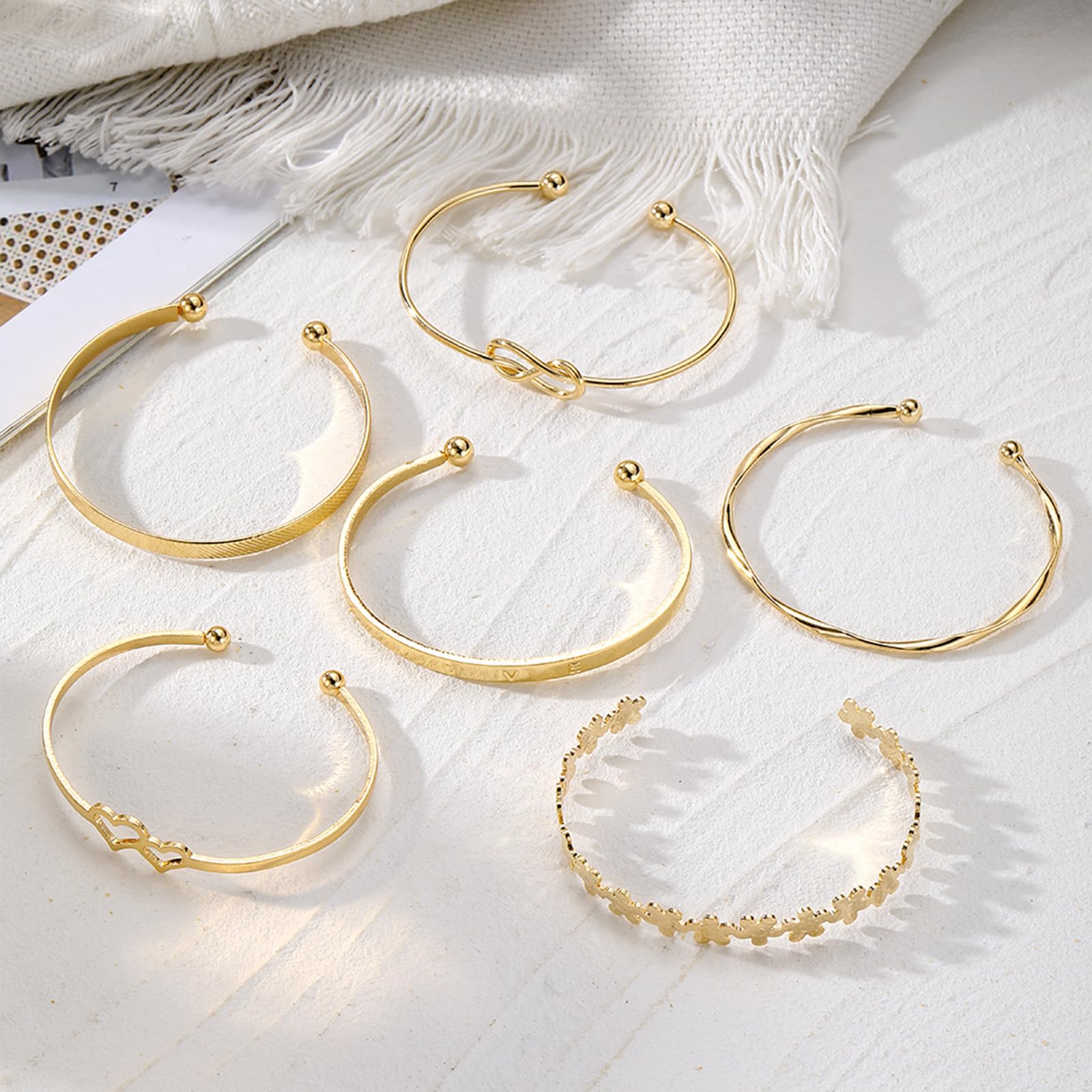 - Cuff Bracelets for Women: Our gold bracelets fit women, multi-layer design, free collocation, The inner diameter is adjustable, size approximately 6 cm - 6.8 cm (2.36 inches - 2.68 inches). suitable for most women wrist