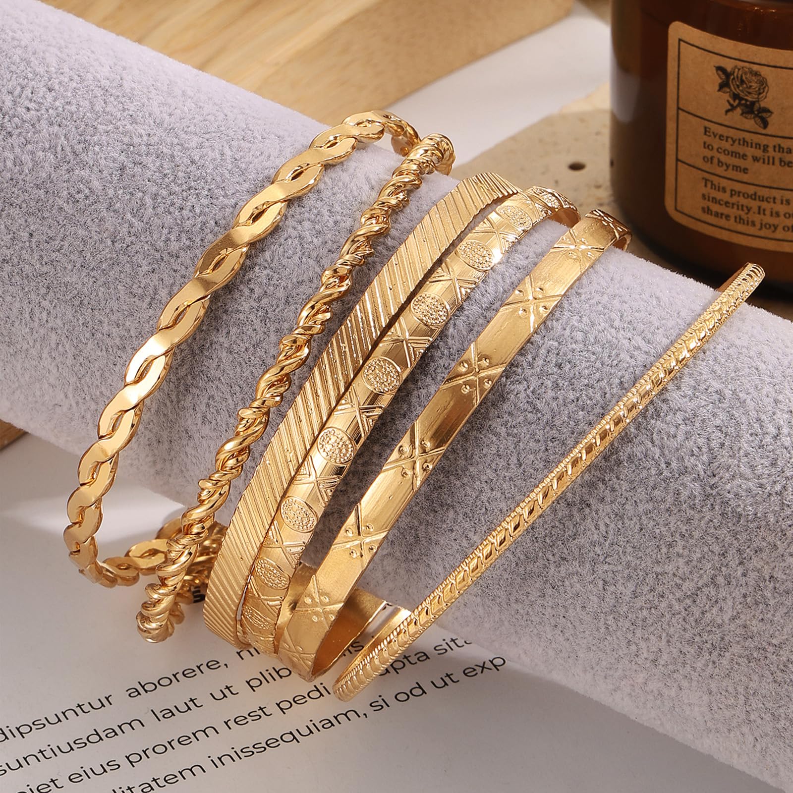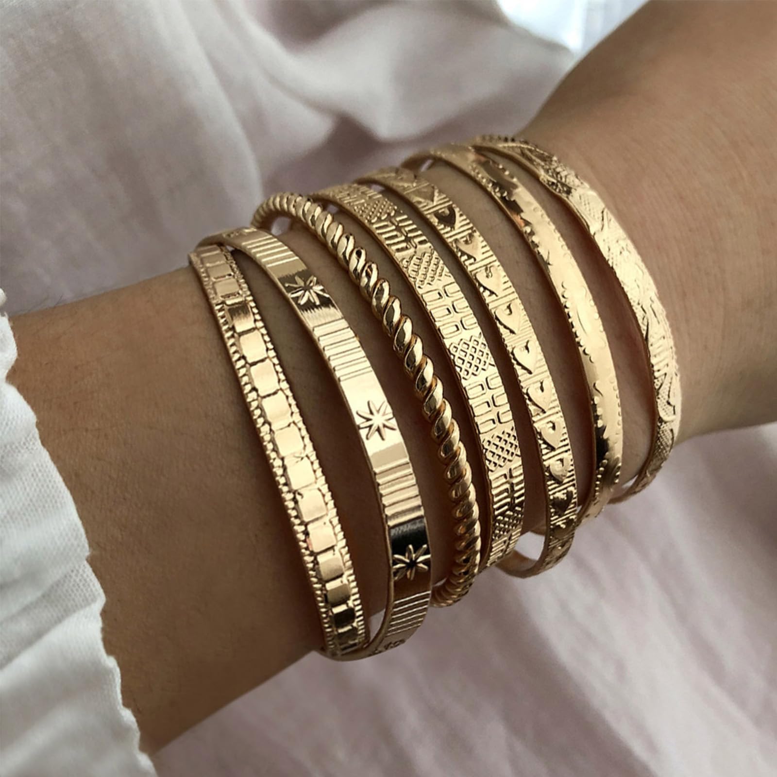 - Gold Bangles Bracelets For Women 14k Gold Plated Multi Layered Stackable Cuff Bracelet Set Trendy Elegance Charms Non Tarnish Minimalist Textured Boho Jewelry Anniversary Gift Dainty Cute Adjustable Hypoallergenic Charm indian chunky