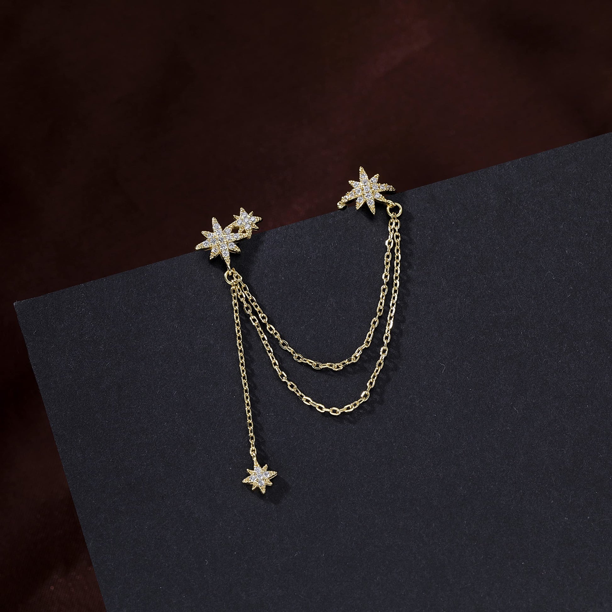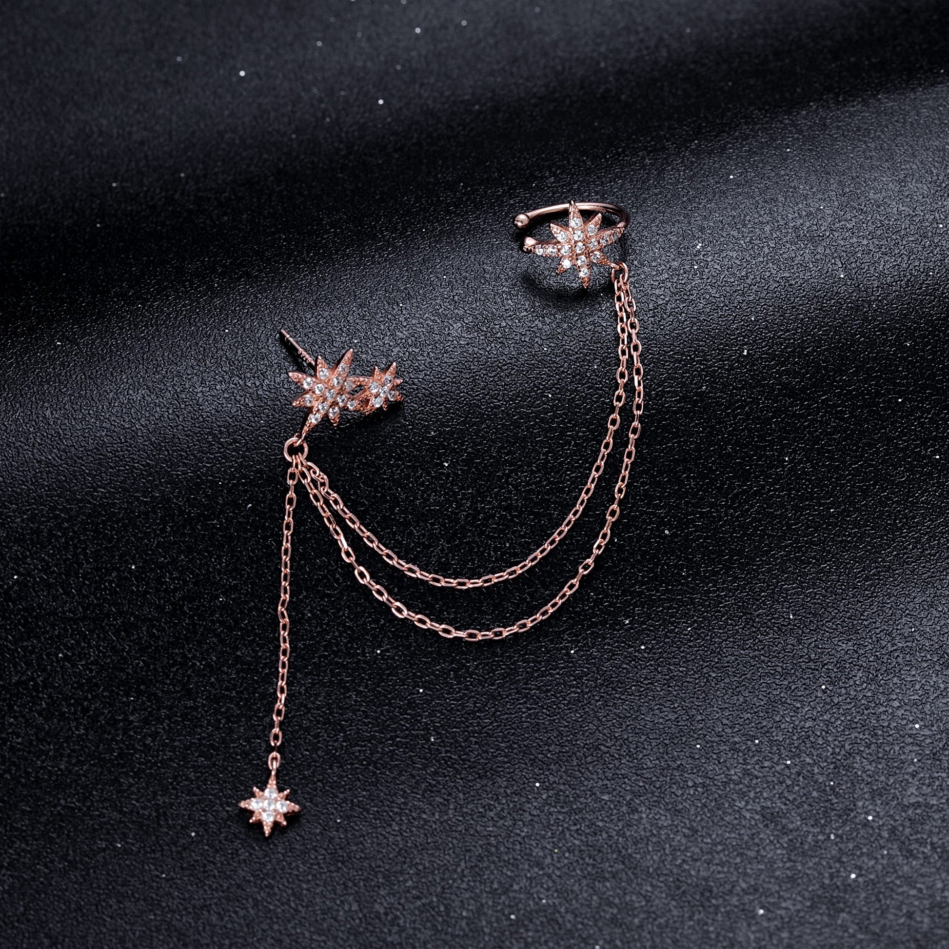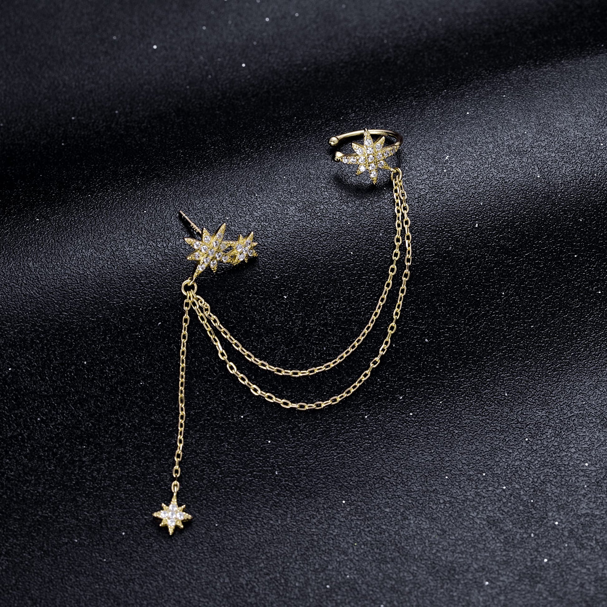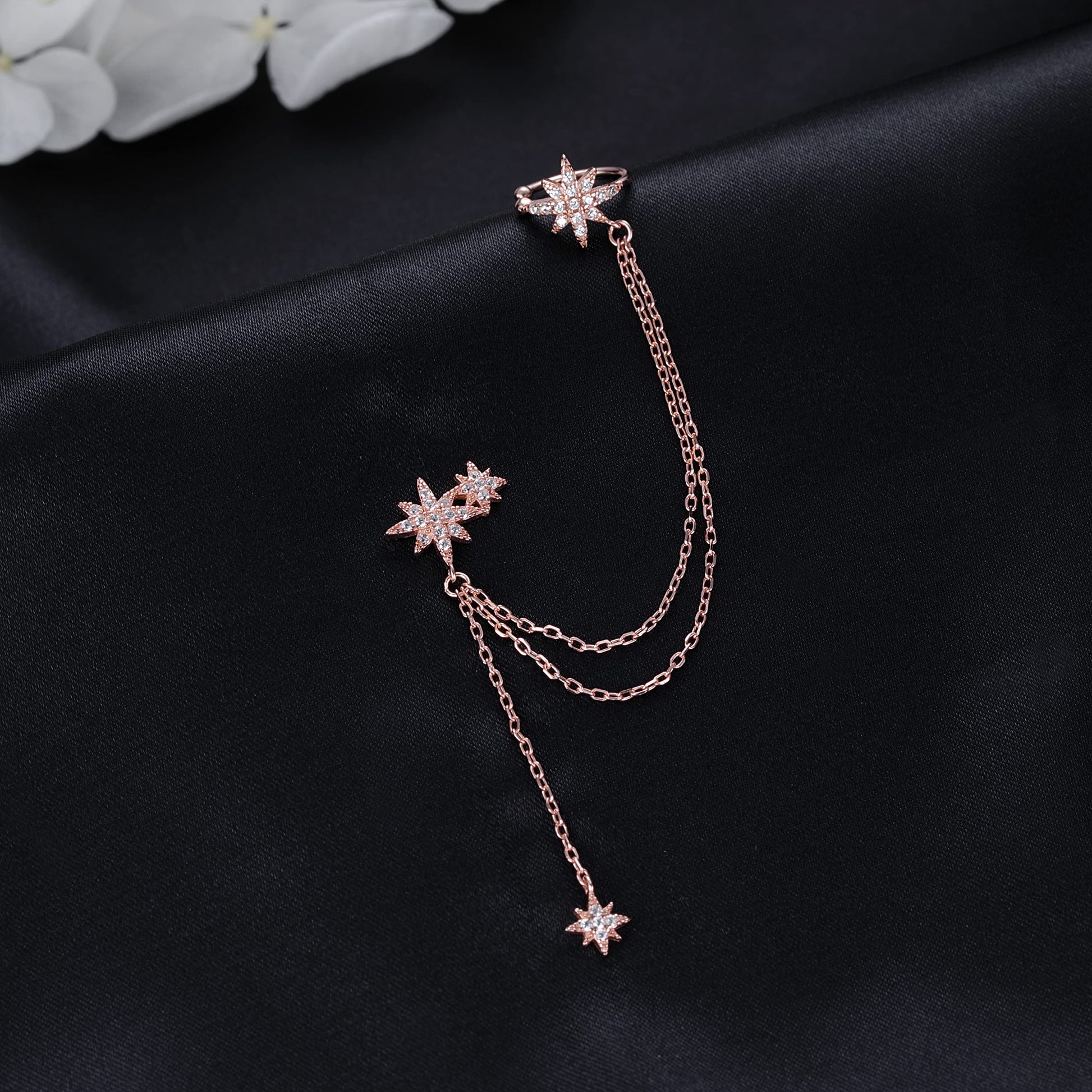 - SURFACE PLATING: The cuff sizes is 0.9cm(0.35''), the star earrings size is1.25cm*1.1cm(0.49''*0.43''), drop star earrings size is 0.6cm(0.24''), the dangle chain length is 3.8cm(1.5''), the whole earrings weight is 3.4g/pair, these cuff earrings all come with silver clean cloth in a pretty gift box stamped SLUYNZ.