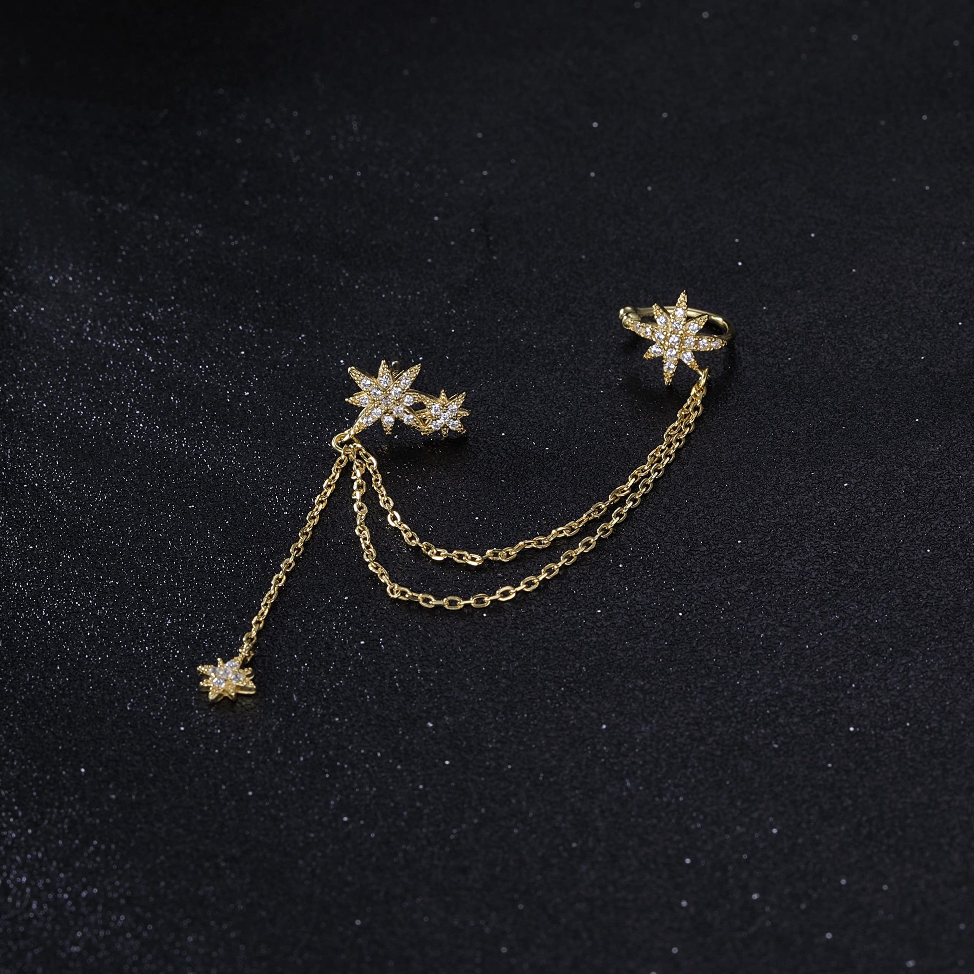 SLUYNZ 925 Sterling Silver Fashion Star Cuff Earring Chain for Women Star Crawler Earring Wrap Earrings